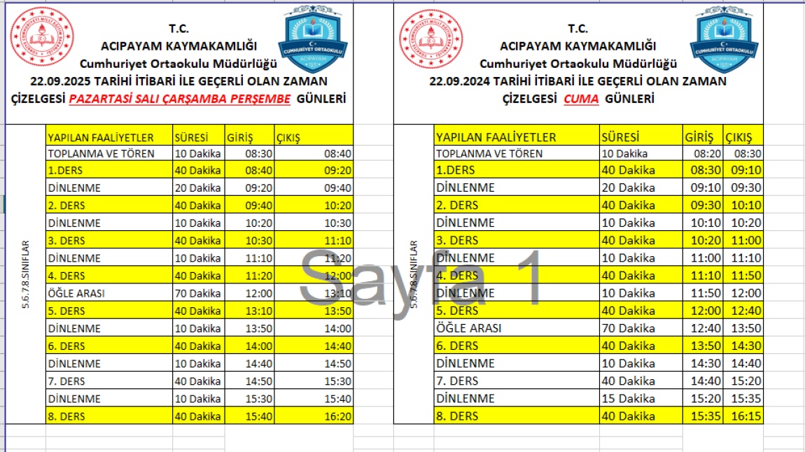 2025-2026 Eğitim Öğretim Yılı Cumhuriyet Ortaokulu 22.09.2025 Tarihi...
